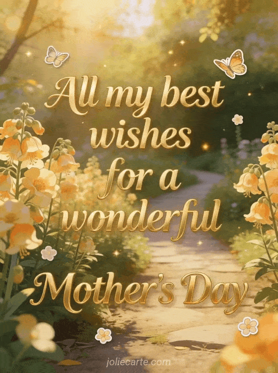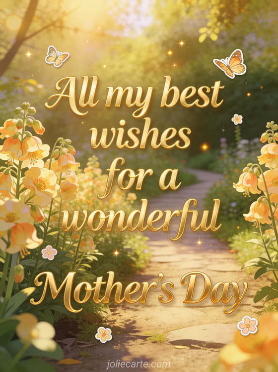 Share your warmest wishes for mother's day with this beautiful card featuring elegant gold script and a serene garden path of daylilies in bloom. Discover also a happy mother's day image or a mother's day card flowers.