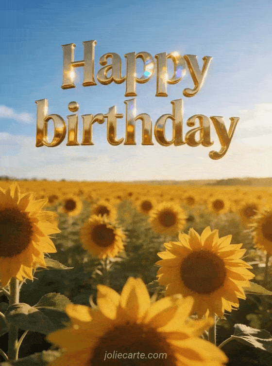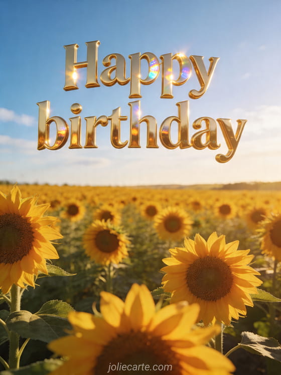 Happy birthday a joyful birthday greeting in a radiant sunflower field