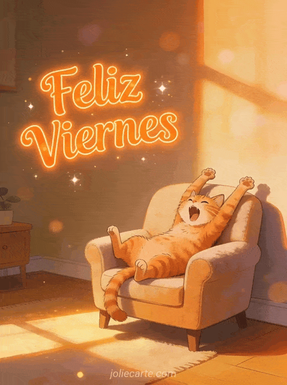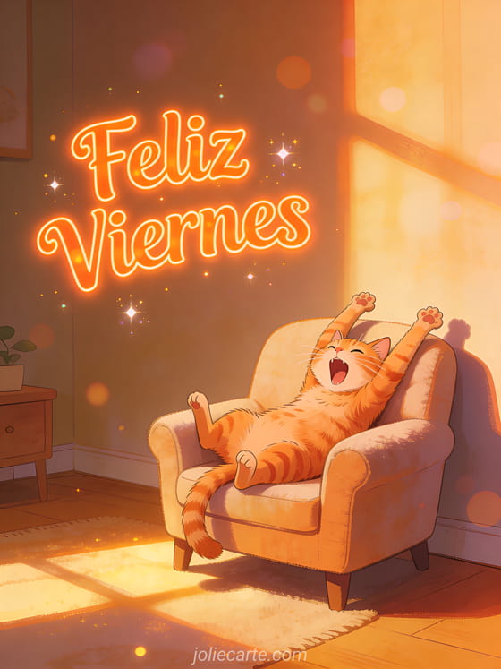 Envía un divertido saludo de feliz viernes con esta simpática tarjeta. Un gracioso gato pelirrojo estirándose y bostezando perezosamente en un cómodo sillón al sol. Descubre también una tarjeta de feliz viernes con erizo o una tarjeta de feliz viernes.