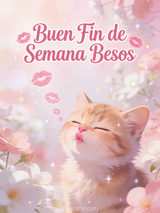 Alegra el fin de semana de alguien con este adorable saludo lleno de besos. Descubre también una tarjeta de fin de semana con humor, una tarjeta de buen fin de semana o una imagen de buen fin de semana.