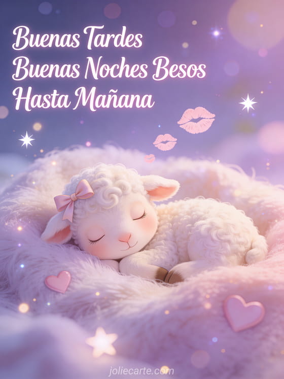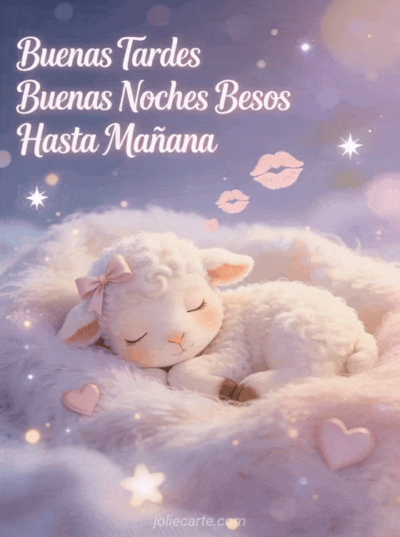 Buenas tardes buenas noches besos hasta mañana una tierna tarjeta de la tarde con un acogedor corderito dormido
