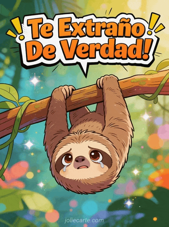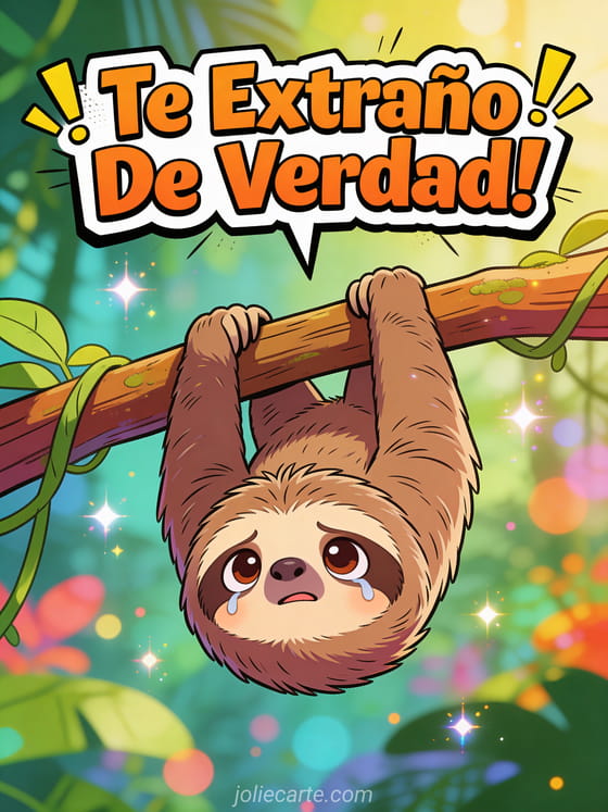 Envía esta divertida tarjeta con un lindo perezoso colgando de una rama con expresión dramáticamente triste en una colorida jungla. Descubre también una tarjeta te extraño tanto mi amor o una tarjeta pienso en ti te extraño.