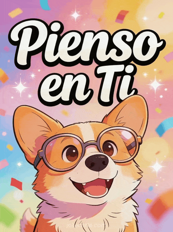 Envía una divertida tarjeta pienso en ti con un adorable corgi con gafas gigantes. Descubre también una tarjeta mensaje pienso en ti o una tarjeta pienso mucho en ti.