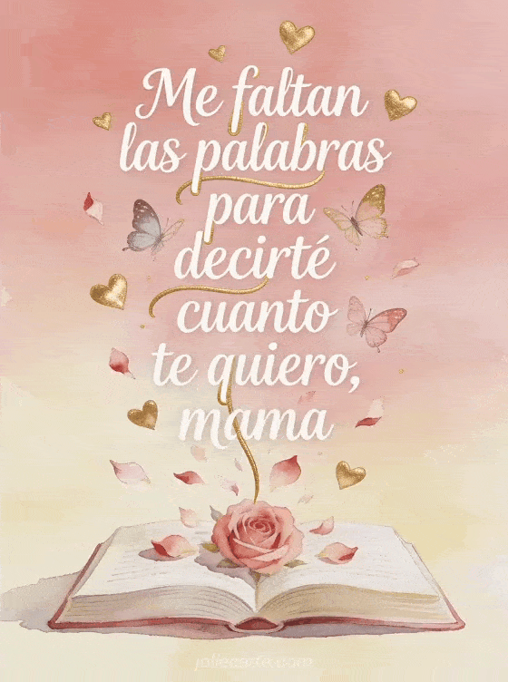 Expresa todo tu amor con esta hermosa tarjeta del Día de la Madre. Las palabras se transforman en mariposas y pétalos de rosa en una ilustración poética y conmovedora que hará que tu mamá se sienta especial.