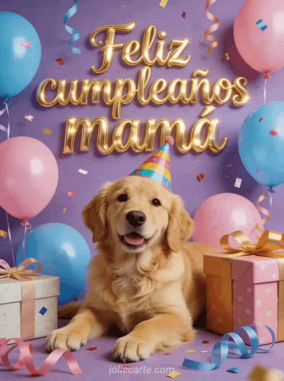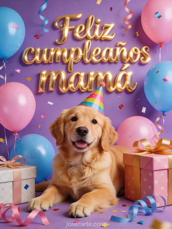 Feliz cumpleaños mamá una alegre celebración de cumpleaños con un adorable golden retriever
