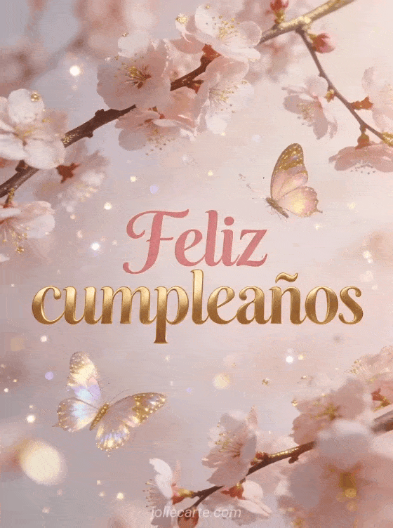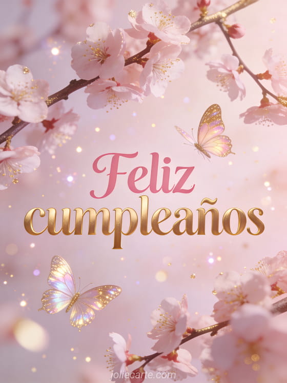 Envía un refinado y delicado feliz cumpleaños con mariposas iridiscentes y cerezos en flor. Descubre también una tarjeta ramo cumpleaños mujer, una ecard cumpleaños mujer o un gif cumpleaños mujer gratis.