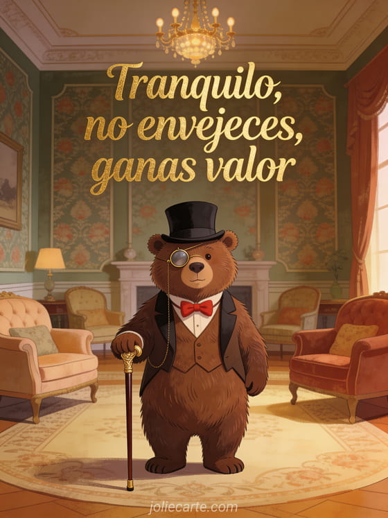 Envia esta ingeniosa tarjeta de cumpleaños con un distinguido oso pardo con monoculo y sombrero de copa, sosteniendo un elegante baston con corbatin rojo, en un salon victoriano. Descubre tambien una tarjeta de cumpleaños con zorro elegante para hombre o una tarjeta de cumpleaños con champan para hombre.