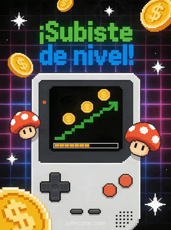 ¡Subiste de nivel! una tarjeta de cumpleaños estilo retro gaming