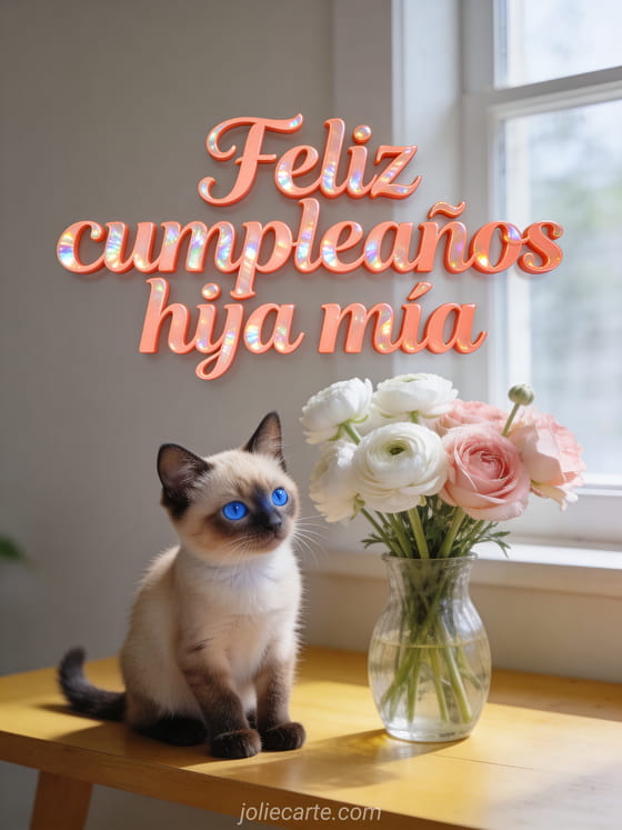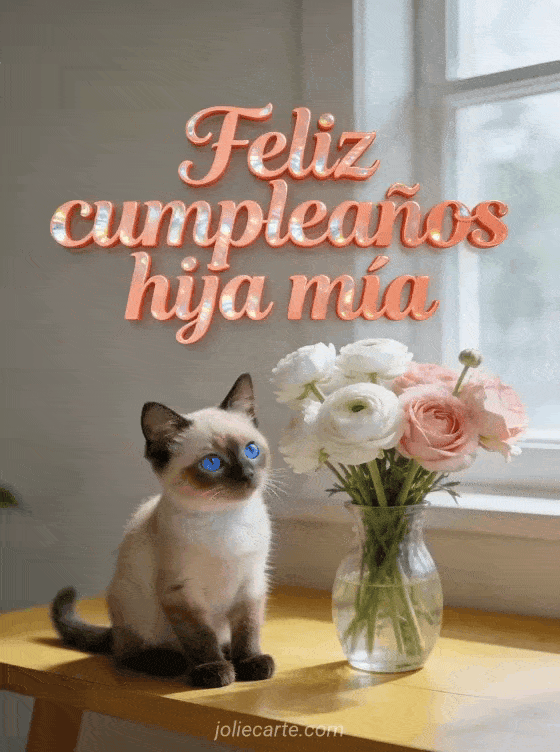 Feliz cumpleaños hija mía con gato siamés un tierno y luminoso saludo de cumpleaños para tu hija