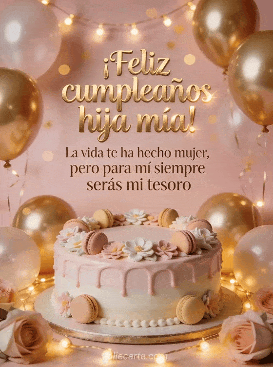 Envía un sentido feliz cumpleaños a tu hija y recuérdale que siempre será tu tesoro. Descubre también una tarjeta de feliz cumpleaños hija que cada nuevo año te traiga felicidad, de feliz cumpleaños hija mía sol de mis días o de feliz cumpleaños hija mía.