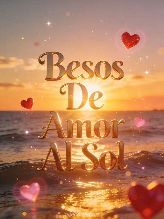 Comparte tu amor con esta radiante tarjeta de besos de amor al sol junto a un hermoso atardecer. Una manera cálida y romántica de enviar tu cariño. Descubre también una tarjeta de besitos dulces y tiernos.