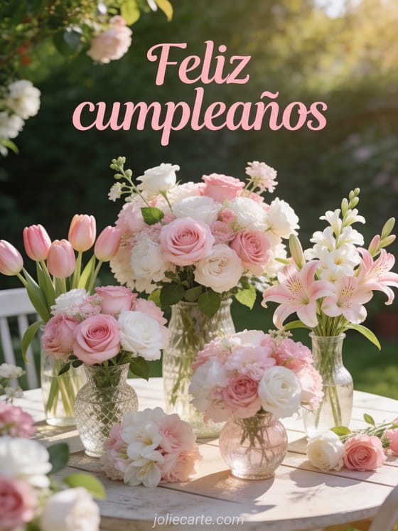 Celebra el cumpleaños de una mujer especial con esta hermosa tarjeta floral. Descubre también un texto de feliz cumpleaños para mujer, un gif de cumpleaños para mujer o un ramo de cumpleaños para mujer.