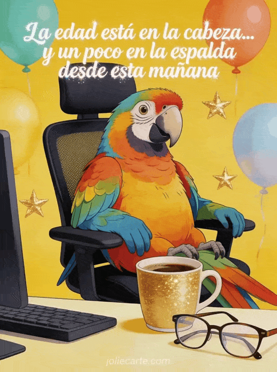 La edad está en la cabeza... y un poco en la espalda desde esta mañana una tarjeta de cumpleaños colorida e hilarante