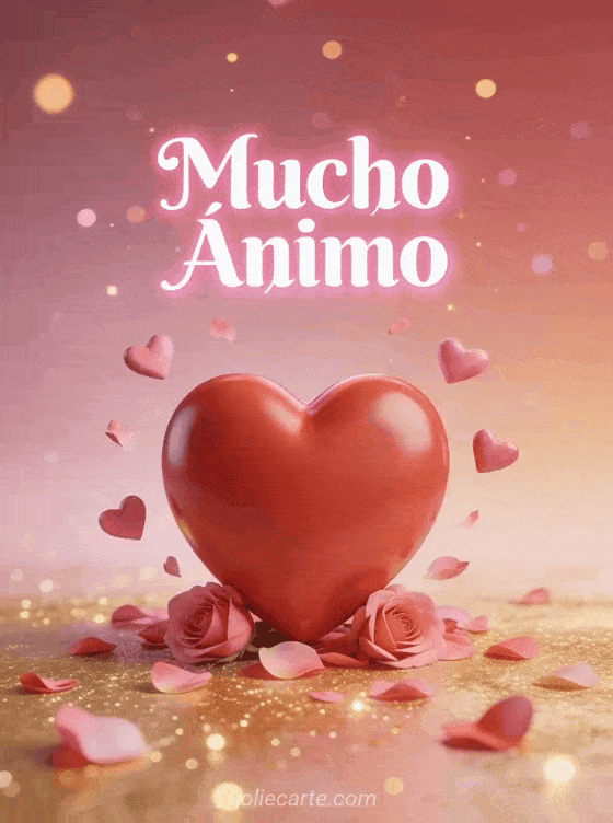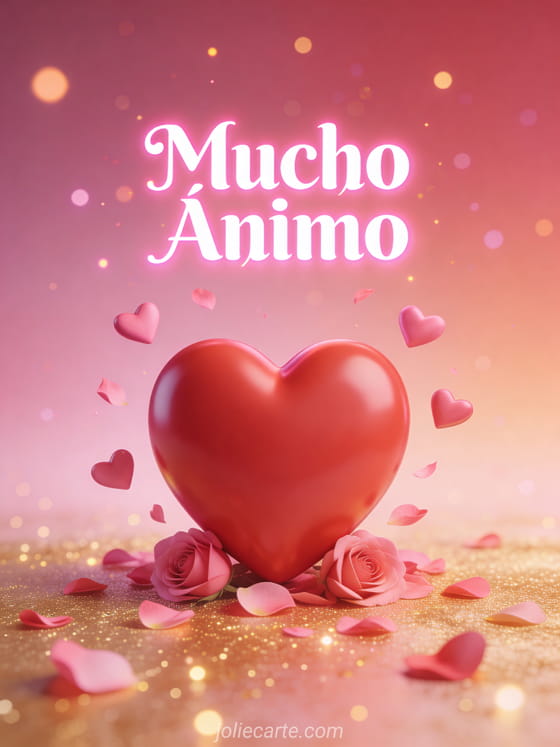 Envia esta hermosa tarjeta de animo con un gran corazon rojo en 3D rodeado de corazones rosas flotantes y petalos de rosa para reconfortar a alguien. Descubre tambien una tarjeta de animo o una tarjeta de mucho animo para mas mensajes sinceros.