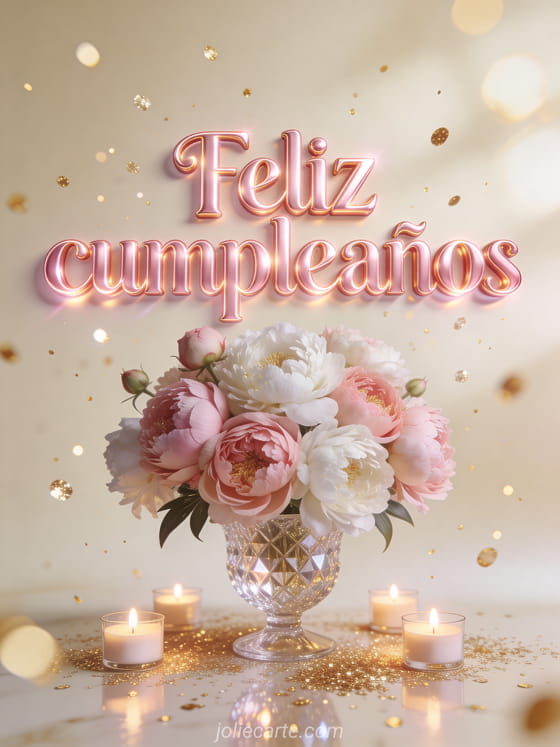 Envía un elegante feliz cumpleaños para celebrar el día especial de alguien con refinamiento y belleza. Haz del momento algo verdaderamente memorable. Descubre también un gif de cumpleaños para mamá, un feliz cumpleaños a mi querida mamá o una tarjeta de cumpleaños para mamá.
