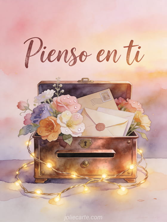 Envía un tierno pienso en ti a alguien que importa. Hazle saber que está en tus pensamientos con esta hermosa tarjeta gratuita. Descubre también una tarjeta pienso en ti a cada instante o una tarjeta pienso en ti siempre.