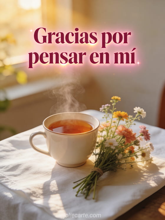 Expresa tu gratitud a quien se tomó el tiempo de pensar en ti con esta conmovedora tarjeta. Descubre también una tarjeta de gracias por el momento juntos, una tarjeta de gracias a ti o una imagen de gracias.