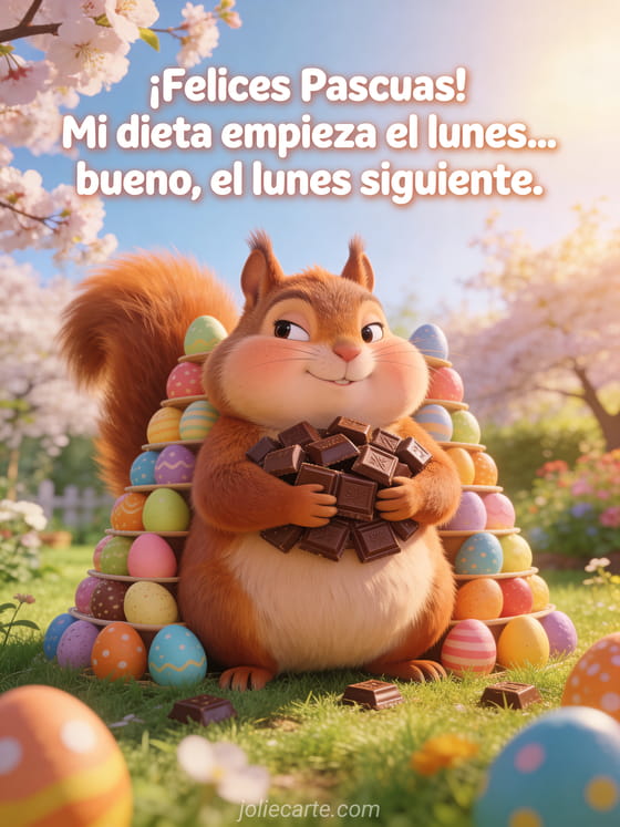 Comparte una buena carcajada en Pascua con esta tarjeta desternillante sobre la tentación del chocolate. Descubre también un divertido fin de semana de Pascua, un humor de Pascua o una divertida tarjeta de Pascua con humor.