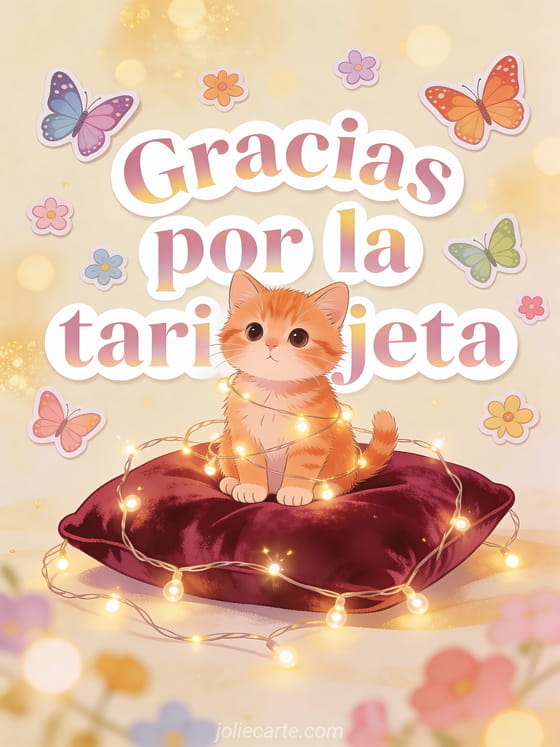 Expresa tu gratitud por una tarjeta atenta con esta adorable tarjeta con gatito. Descubre también una tarjeta de agradecimiento por la tarjeta, una tarjeta de gracias por tu atención o una tarjeta de gracias por este bello mensaje.