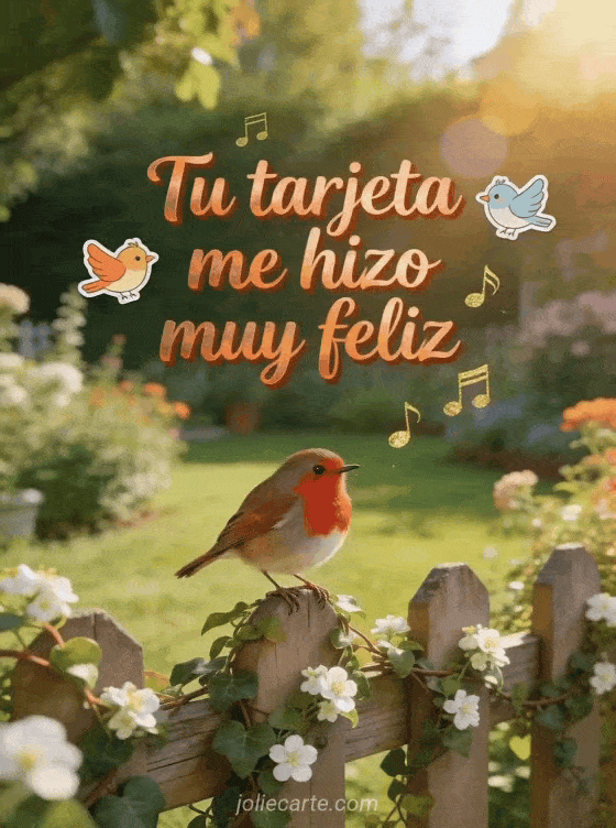 Tu tarjeta me hizo muy feliz una alegre tarjeta de agradecimiento con un petirrojo en un jardín