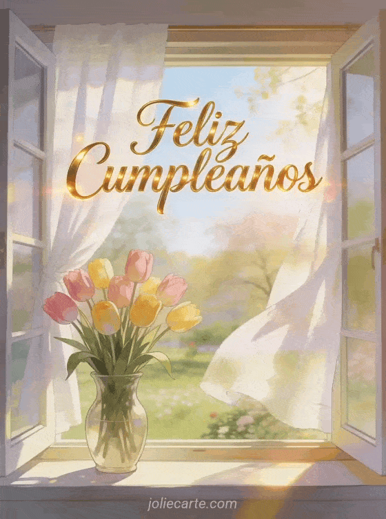 Tarjeta de cumpleaños gratis con tulipanes y luz primaveral