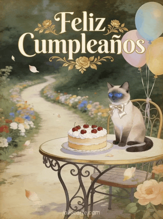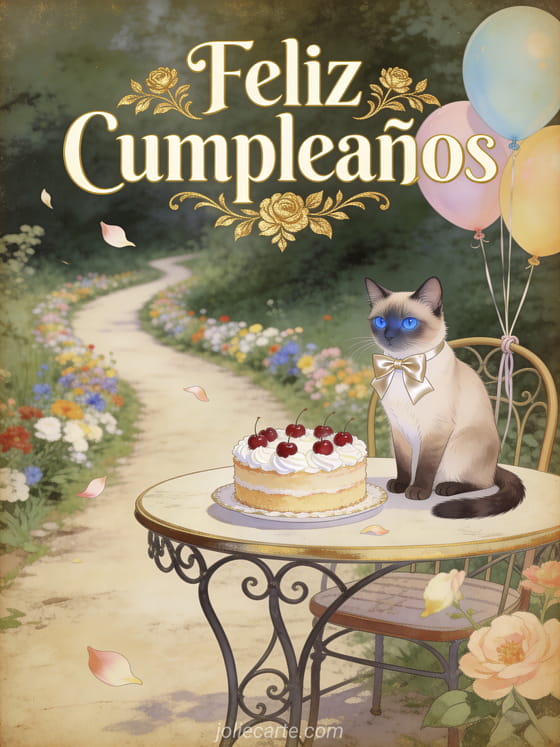 Deséale un feliz cumpleaños con esta elegante tarjeta estilo vintage con un gato siamés junto a un pastel con cerezas en un camino campestre. Descubre también una tarjeta de cumpleaños con champagne o una tarjeta graciosa de cumpleaños para ella.