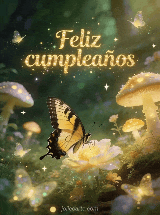 Celebra un cumpleaños con esta encantadora tarjeta que muestra una magnífica mariposa macaón posada sobre una flor féerica en un claro mágico con hongos luminosos, luciérnagas y estrellas centelleantes. Descubre también una tarjeta de cumpleaños en la arena o una tarjeta de cumpleaños sorpresa.