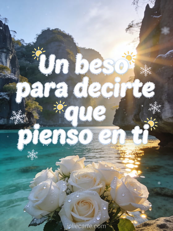 Envía un dulce beso con esta hermosa tarjeta para decirle a alguien especial que piensas en esa persona. Una cálida ilustración invernal con suave luz de sol para alegrar su día. Descubre también una tarjeta te amo pienso en ti o una tarjeta de amor pienso en ti.