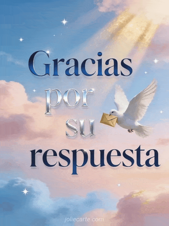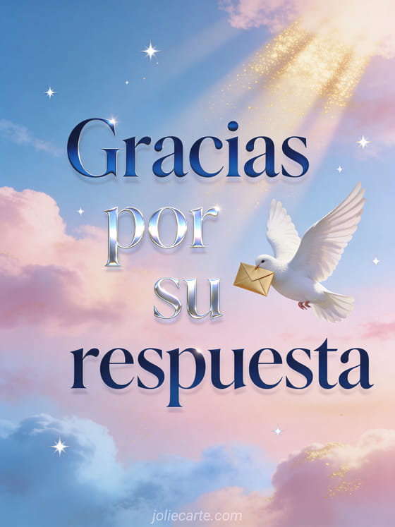 Agradece a alguien por tomarse el tiempo de responder con esta poética tarjeta que muestra una suave ilustración con una paloma. Una forma cálida y benevolente de expresar tu gratitud. Descubre también una tarjeta de gracias y buen día o una tarjeta de gracias.
