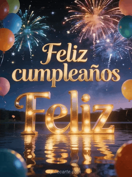 Celebra un cumpleaños con esta grandiosa tarjeta con espectaculares fuegos artificiales multicolores explotando en un cielo nocturno estrellado sobre un lago, reflejos de luz en el agua y globos coloridos flotando al cielo. Descubre también una tarjeta de feliz cumpleaños hermanita o un feliz cumpleaños hermanita tarjeta.