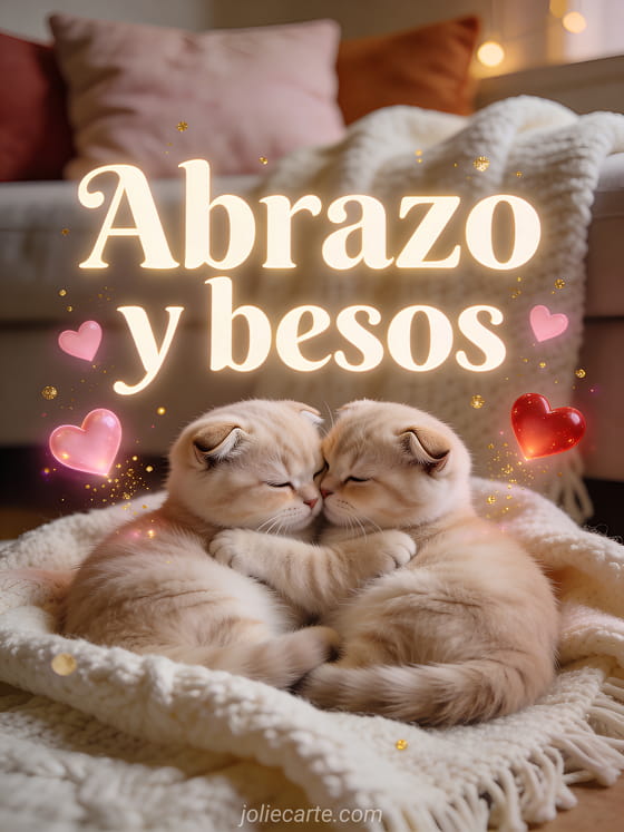 Comparte un dulce abrazo y besos con tu pareja con esta adorable tarjeta. Descubre también besos de amor imágenes, besos mi amor gif o foto de amor besos.