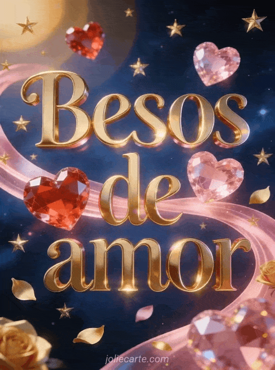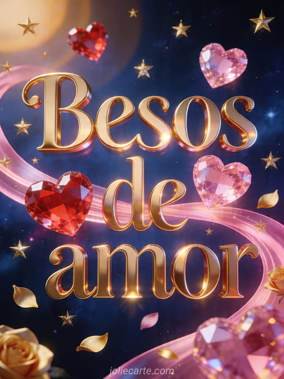 Compartan besos de amor apasionados con esta tarjeta gratis llena de corazones de cristal, cintas de luz rosa y un cielo nocturno mágico. Descubran también cita besos pareja, página beso tierno o SMS de amor muchos besos imagen.