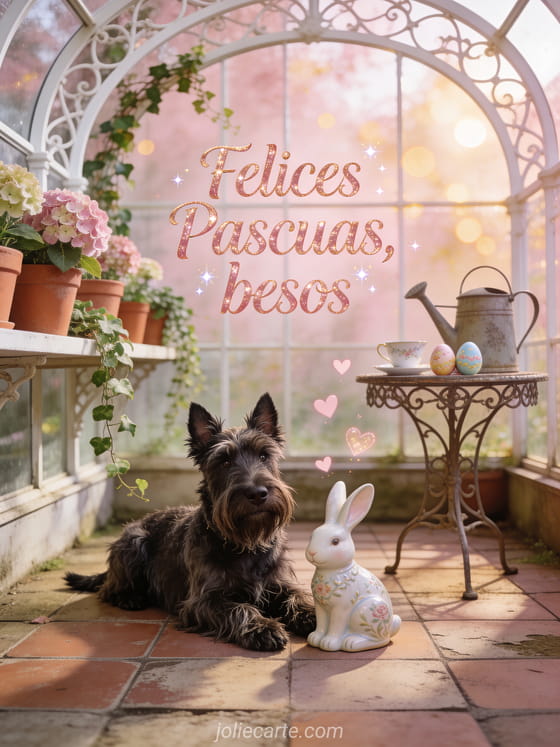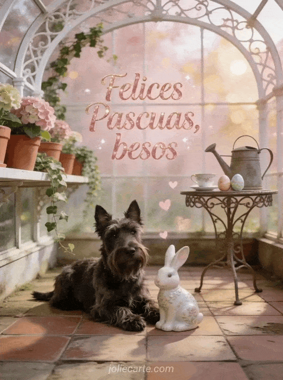 Besos felices pascuas gif un tierno gif de Pascua con besos y una encantadora escena en un invernadero victoriano
