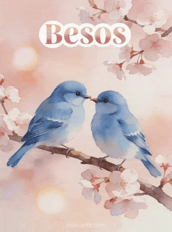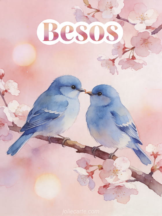 Comparta un tierno mensaje de besos con esta delicada tarjeta de dos herrerillos tocándose el pico sobre una rama de cerezo en flor. También puede descubrir logos animados besos, gif conejo besitos o linda tarjeta besos.