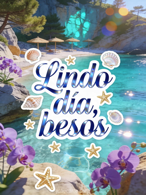 Desea a alguien un lindo día con besos y esta encantadora tarjeta de inspiración mediterránea. También pueden interesarle muchos besos buen día o buenos días mi corazón buen día para un toque romántico.