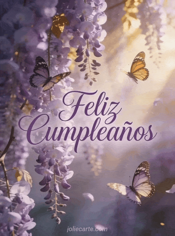 Feliz Cumpleaños un poético saludo de cumpleaños con mariposas y glicinas