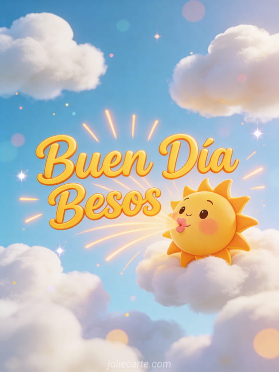 Buen Día Besos una alegre tarjeta con un lindo sol lanzando besos