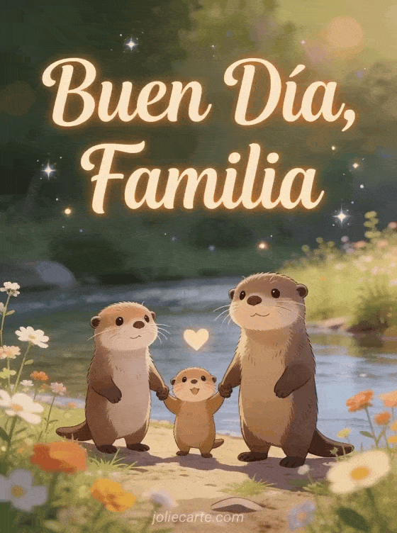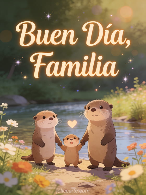 Comparta un emotivo saludo familiar con esta adorable tarjeta de familia de nutrias. Descubra también una tarjeta buen día conejo o una tarjeta soleado gif buen día.