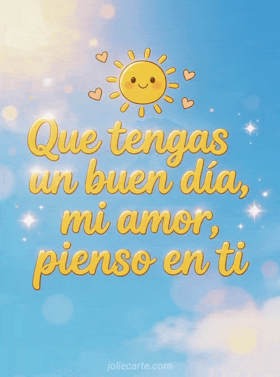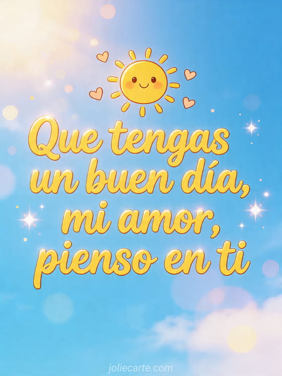Comparte una luminosa tarjeta de buen día, mi amor para enviar cariño y sol desde el inicio del día. También puedes descubrir pienso en ti te amo, pienso en ti besos o pienso mucho en ti mi amor.