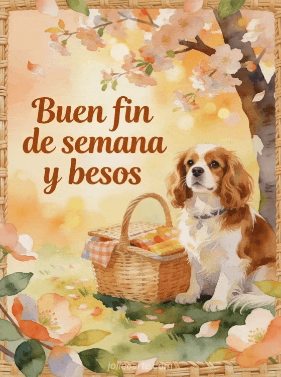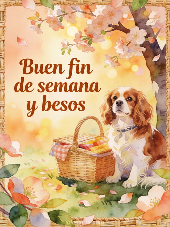 Comparte un mensaje tierno de fin de semana con esta tarjeta en acuarela llena de luz cálida, pétalos y alegría relajada. Descubre también una feliz fin de semana besos animados, una feliz fin de semana besos foto o una hola feliz fin de semana besitos.