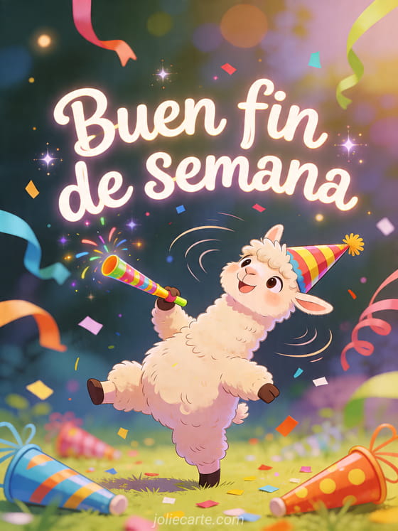 Envía esta tarjeta de buen fin de semana divertido humor para empezar el descanso con confeti y sonrisas. Descubre también tarjeta feliz fin de semana, smiley buen fin de semana o imágenes buen fin de semana.