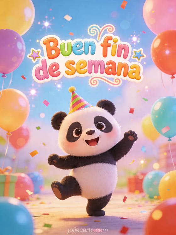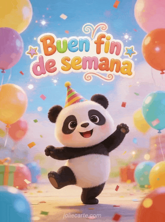 Compartan un buen fin de semana divertido con esta tarjeta gratis y comiencen el fin de semana con globos, confeti y sonrisas. También pueden descubrir buen fin de semana soleado gif, buen fin de semana naturaleza o buen fin de semana besos.