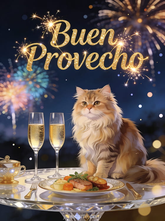 Envía un deslumbrante saludo de buen provecho para nochevieja y haz que la celebración sea aún más especial. Descubre también una tarjeta buen provecho, una imagen buen provecho comida o una imagen buen provecho navidad.