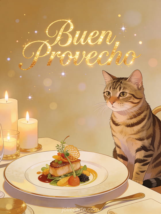Envía este elegante deseo de buen provecho y haz que cada comida sea especial. Descubre también una imagen de buen provecho o una tarjeta de buen provecho navideña.