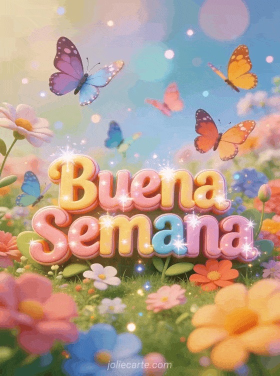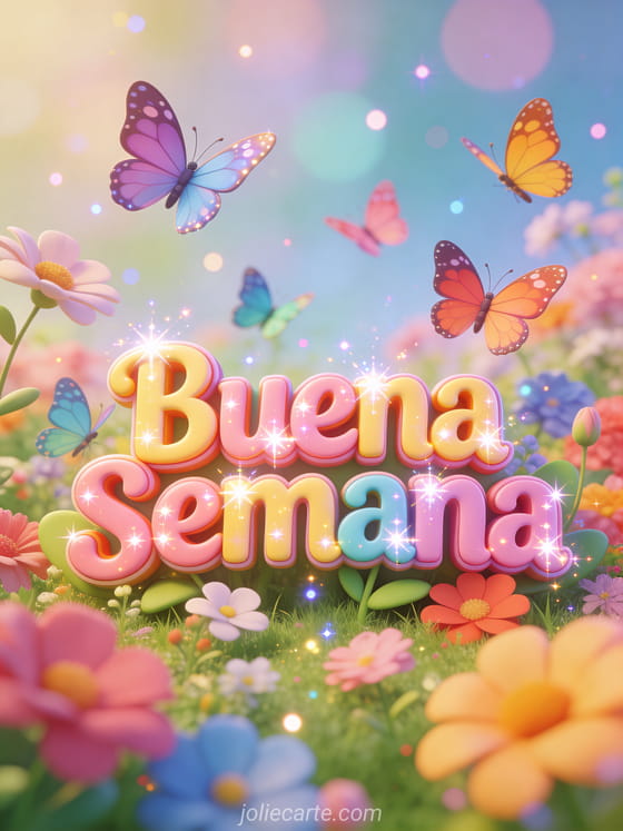 Ilumina el comienzo de la semana de tus seres queridos con esta colorida tarjeta con mariposas danzando alrededor de flores de primavera en una atmósfera alegre y vibrante. Descubre también una tarjeta de buena semana y ánimo o una tarjeta divertida de buena semana.
