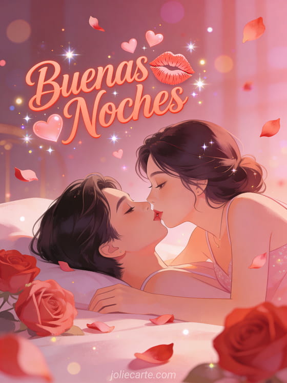 Envía dulces besos de buenas noches de mi parte con esta afectuosa tarjeta gratis. Descubre también buenas noches con animales o buenas noches deseos para una amiga.