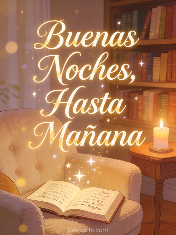 EnvĆa una inspiradora frase de buenas noches hasta maƱana con esta tarjeta gratis con un libro mĆ”gico abierto y palabras flotando como estrellas. Descubre tambiĆ©n un gif buenas noches hasta maƱana o buenas noches besos hasta maƱana.