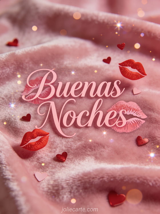 Envía una dulce imagen de buenas noches con besos a quien amas con esta romántica tarjeta gratis. Descubre también buenas tardes junto a la chimenea o buenas tardes cachorro.