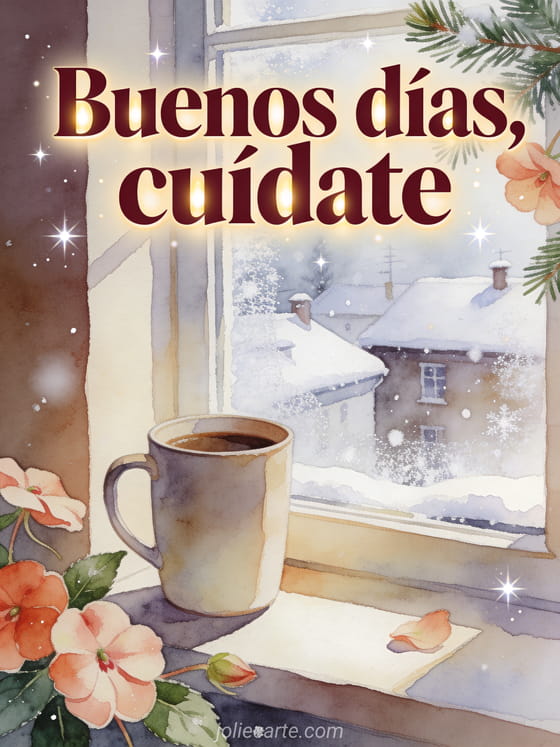 Buenos días, cuídate un cálido deseo de mañana de invierno