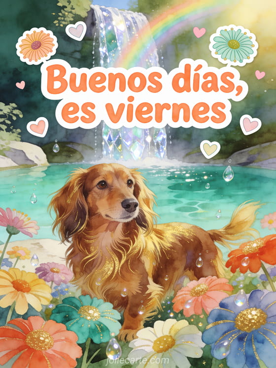 Envía este gif de buenos días es viernes para alegrar el comienzo del fin de semana. Descubre también unos viernes besitos gifs o una feliz viernes bajo la lluvia tarjeta.